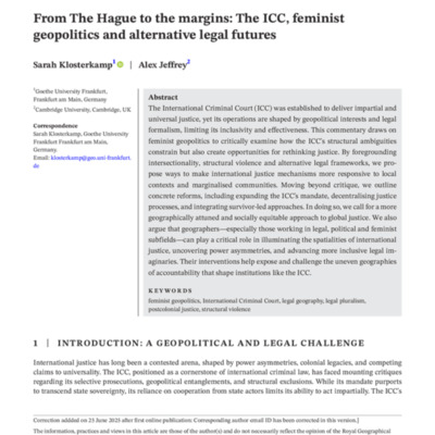 Tags: feminist geopolitics, International Criminal Court, legal geography, legal pluralism, postcolonial justice, structural violence