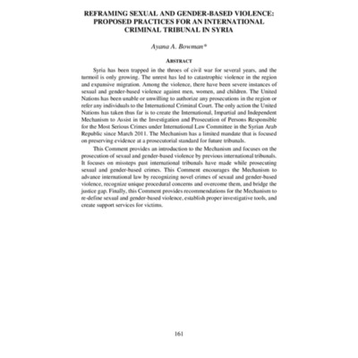 Reframing Sexual and Gender-based Violence: Proposed Practices for an International Criminal Tribunal in Syria