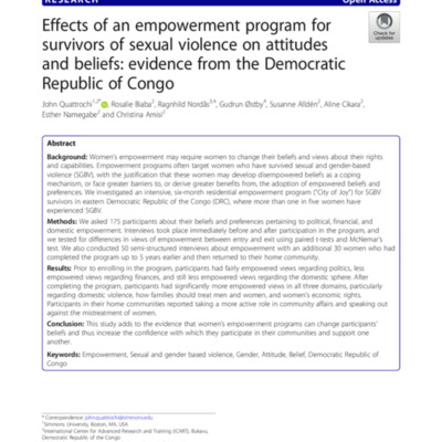 Tags: Attitude, Belief, Democratic Republic of Congo, Empowerment, gender, Sexual and gender based violence