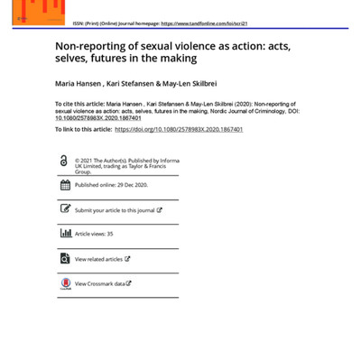 Tags: Norway, police reporting, Rape, regimes of justification, Sexual violence, the Nordic countries