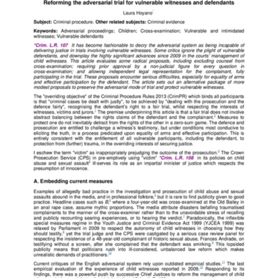 Tags: Adversarial proceedings, children, cross-examination, Vulnerable and intimidated witnesses, Vulnerable defendants