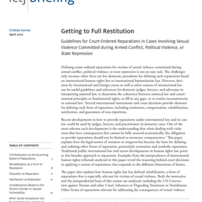 Getting to Full Restitution: Guidelines for Court-Ordered Reparations in Cases Involving Sexual Violence