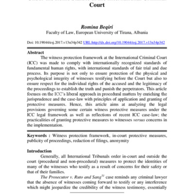 Tags: anonymity, in-court protective measures, publicity of proceedings, redaction of filings, Witness protection framework