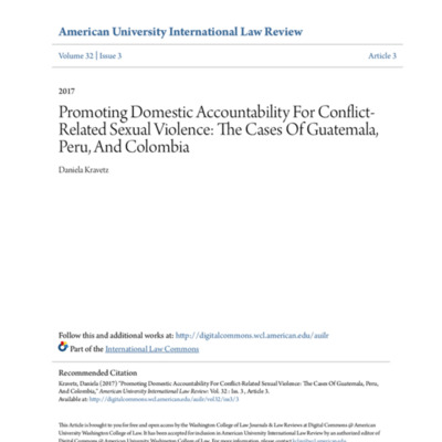 Promoting Domestic Accountability for Conflict-Related Sexual Violence: Cases of Guatemala, Peru and Colombia