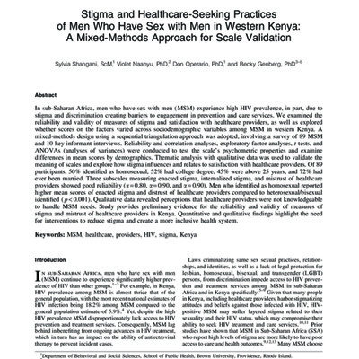 Tags: healthcare, HIV, Kenya, MSM, providers, Stigma
