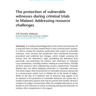 Tags: criminal justice, Malawi, procedural safeguards, resource restraints, vulnerable witnesses