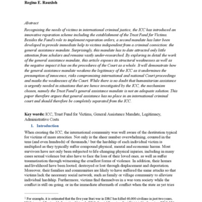 Tags: Administrative Costs, General Assistance Mandate, ICC, Legitimacy, Trust Fund for Victims