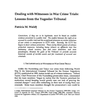 Dealing with Witnesses in War Crime Trials: Lessons from the Yugoslav Tribunal