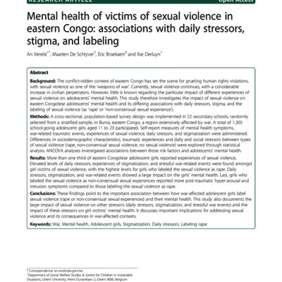 Mental Health of Victims of Sexual Violence in Eastern Congo: Associations with Daily Dtressors, Stigma, and Labeling