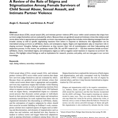 Stigmatization Among Female Survivors of Child Sexual Abuse, Sexual Assault, and