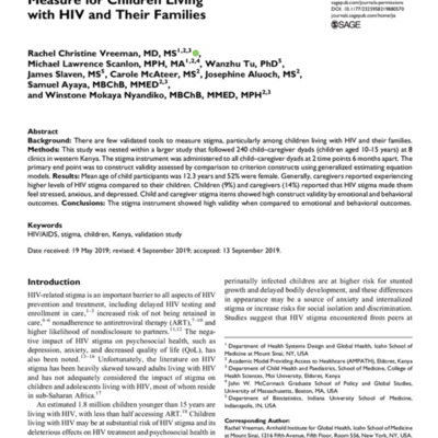 Validation of HIV/AIDS Stigma Measure for Children Living with HIV and Their Families