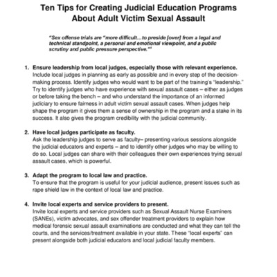 Ten Tips for Creating Judicial Education Programs About Adult Victim Sexual Assault
